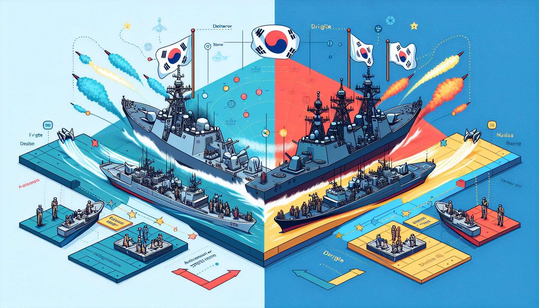 대한민국의 해군 함정: 구축함과 호위함의 차이점 안녕하세요, 여러분! 오늘은 대한민국 해군에서 주로 사용하는 두 종류의 군함, 즉 구축함(destroyer)과 호위함(frigate)에 대한